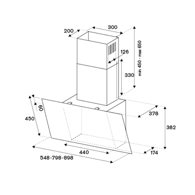 Вытяжка устанавливается внутри навесного кухонного шкафчика на рекомендуемой высоте 65-75 см от рабочей поверхности до нижней точки прибора. Желательно использовать минимум соединительных элементов для воздуховода и соблюдать диаметр вентиляционных труб не менее, чем диаметр выходного отверстия. В режиме рециркуляции необходимо устанавливать угольный фильтр.