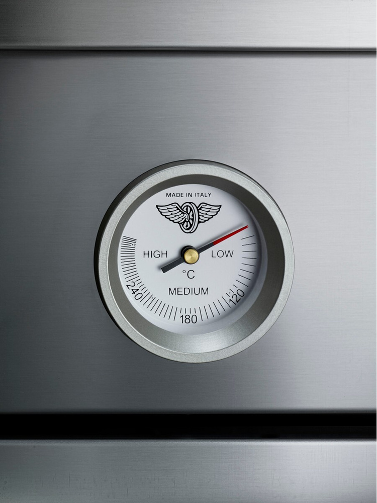 Культовый термометр бренда La Germaina, представленный на моделях высокого класса, придаёт этим приборам профессиональный вид. Точно отслеживайте температуру в духовом шкафу, когда он нагревается. А крылатое колесо станет доказательством того, что это настоящий прибор La Germania, сделанный в Италии.