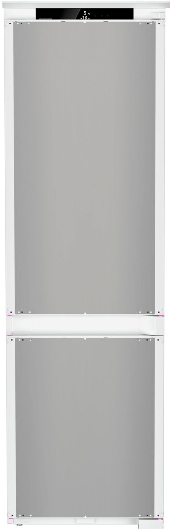 Liebherr ICBNSd 5123 Plus — встраиваемый холодильник высотой 177 см со слайдерным креплением фасада и инверторным компрессором. Полезный объём 241 л: холодильник 172 л (BioFresh 69 л), морозильник 69 л. Сенсорный ЖК‑дисплей, 3 температурные зоны и 2 независимых контура DuoCooling поддерживают точный климат без смешения запахов. Контейнеры BioFresh Fruit & Vegetable‑Safe и DrySafe сохраняют свежесть при температуре около 0 °C, телескопические направляющие упрощают доступ. NoFrost, FrostSafe и VarioSpace избавляют от наледи и дают гибкое пространство. PowerCooling и фильтр FreshAir отвечают за равномерный холод и чистый воздух, LED‑подсветка улучшает обзор.