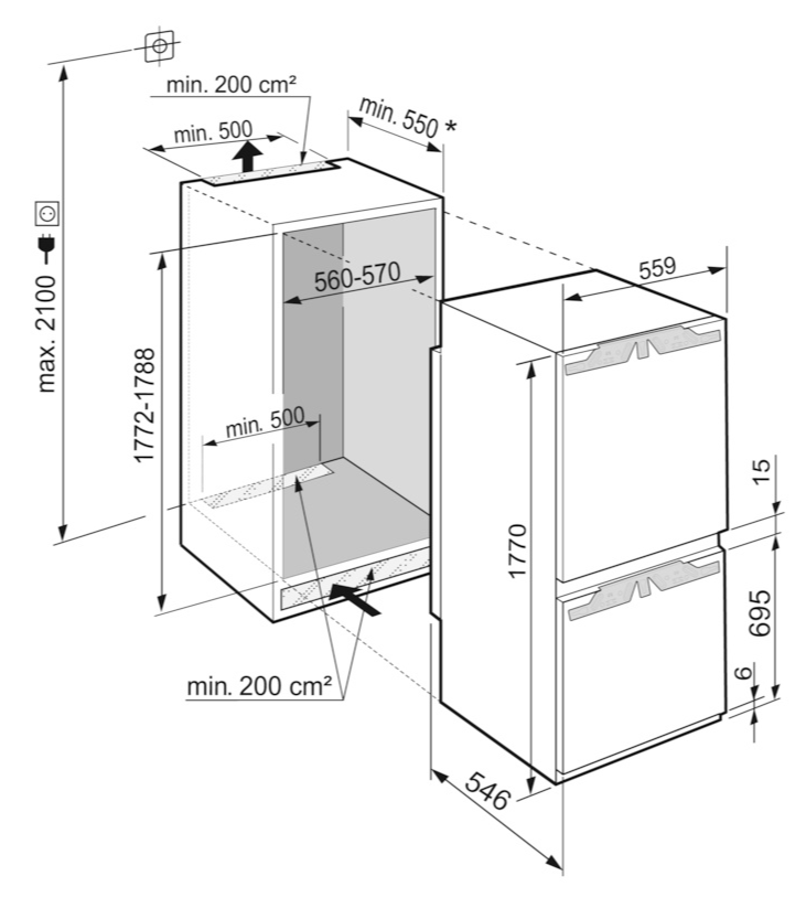 Встраиваемый двухкамерный холодильник с морозильной камерой высотой 177 см Liebherr ICf 5103 Pure