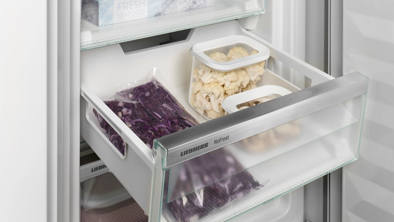 Хотите, чтобы домашний фруктовый пирог оставался свежим? Или приготовленная пицца, которую нужно будет поставить в духовку позже? Просто вставьте противень в ваш Liebherr – в нём достаточно места для хранения противня. Особенно практично: противень можно задвигать и выдвигать при открытой на 90° двери.