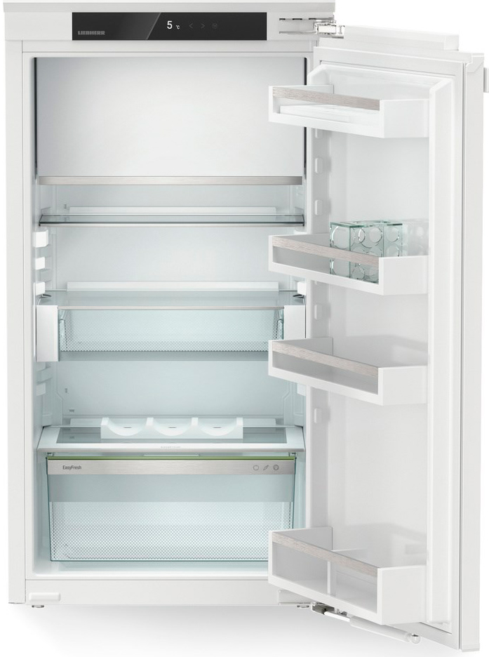 Встраиваемый однокамерный холодильник Liebherr IRd 4021 Plus (102,4–104 см) для установки в колонну, с морозилкой. Общий/полезный объем 158/146 л, холодильник 139/130 л, морозильная камера 16 л. Сенсорное управление, 2 температурные зоны, 1 контур охлаждения, диапазон +2…+9 °C с индикацией. SuperCool, автоматическое размораживание, светодиодное потолочное освещение, EasyFresh и VarioSafe, регулируемые полки и дверные балконы, лоток для яиц, доводчик двери, жесткое крепление фасада, SuperSilent.