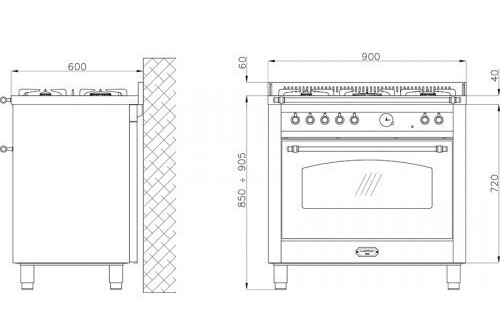 Регулируемые металлические ножки позволяют подстроить высоту плиты под различные кухонные шкафы, а последняя модель печи Lofra разрабатывалась с использованием современных технологий для создания прохладного периметра, что позволяет устанавливать ее вплотную к кухонной мебели.