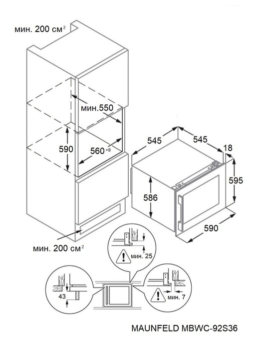 Встраиваемый винный шкаф Maunfeld MBWC-92D36, высотой 60 см, в отделке из черного стекла