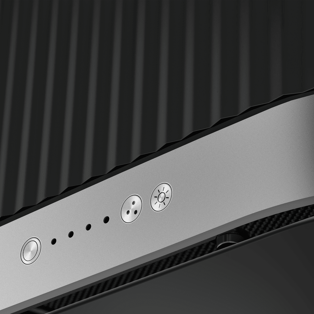 Высокая скорость (3) с розовой индикацией справляется с интенсивными ароматами от жарки или тушения, а повышенная (4) — красным цветом активирует максимальную мощность для быстрого устранения сильного дыма и жира. Такая цветовая система делает управление быстрым и визуально понятным, повышая удобство использования в динамике кухонных дел.