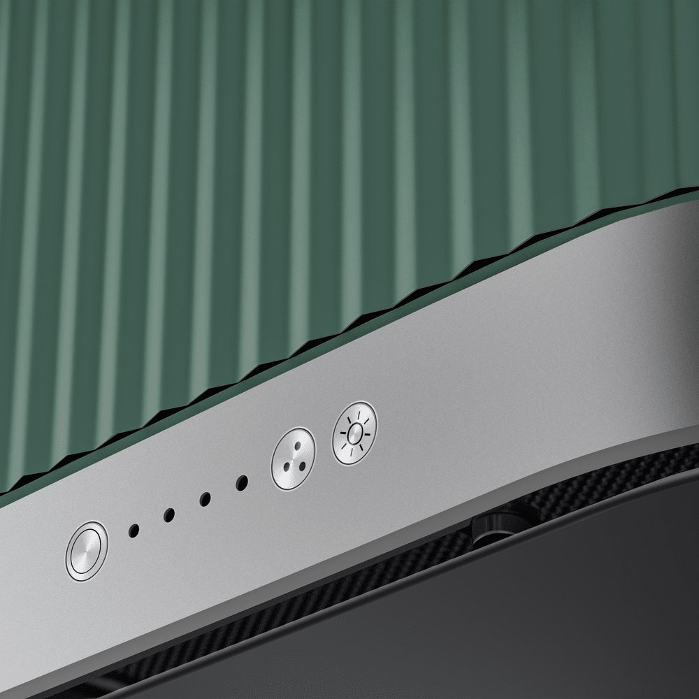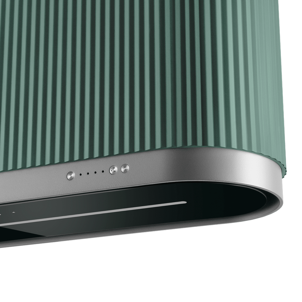 Высокая скорость (3) с розовой индикацией справляется с интенсивными ароматами от жарки или тушения, а повышенная (4) — красным цветом активирует максимальную мощность для быстрого устранения сильного дыма и жира. Такая цветовая система делает управление быстрым и визуально понятным, повышая удобство использования в динамике кухонных дел.