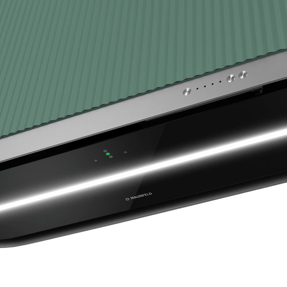 Светодиодная подсветка, расположенная по периметру вытяжки Maunfeld, обеспечивает равномерное освещение варочной поверхности и всей рабочей зоны. Благодаря формированию приятного рассеянного света она не только облегчает процесс приготовления пищи, делая его более комфортным для зрения, но и служит дополнительным источником мягкого освещения на кухне.