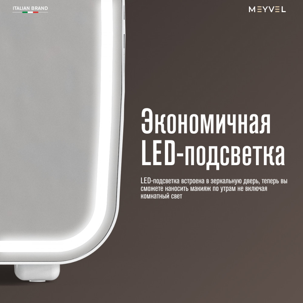 Дополнительная функция «Hot» расширяет возможности прибора: камера нагревается до +55°C, поэтому внутри можно хранить не только косметику, но и грудное молоко. Зеркало в дверце с подсветкой добавляет комфорта в ежедневном использовании, а высокий класс энергоэффективности помогает экономно расходовать электричество.