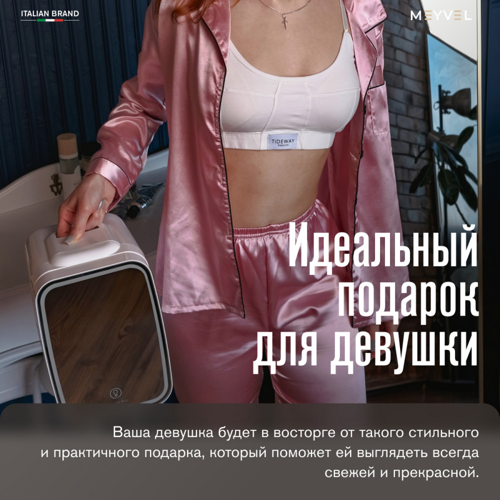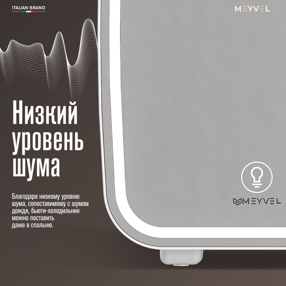 Бьюти-холодильник Meyvel MB-04HC2W — удобное решение для тех, кто хочет хранить косметику в правильных условиях. Он поддерживает температуру от +6 до +8°C, работает тихо и не мешает в спальне или ванной, а компактный объем 4 л позволяет аккуратно разместить любимые уходовые средства под рукой. Легкий вес делает его особенно удобным для поездок, чтобы привычный уход всегда был с вами.
