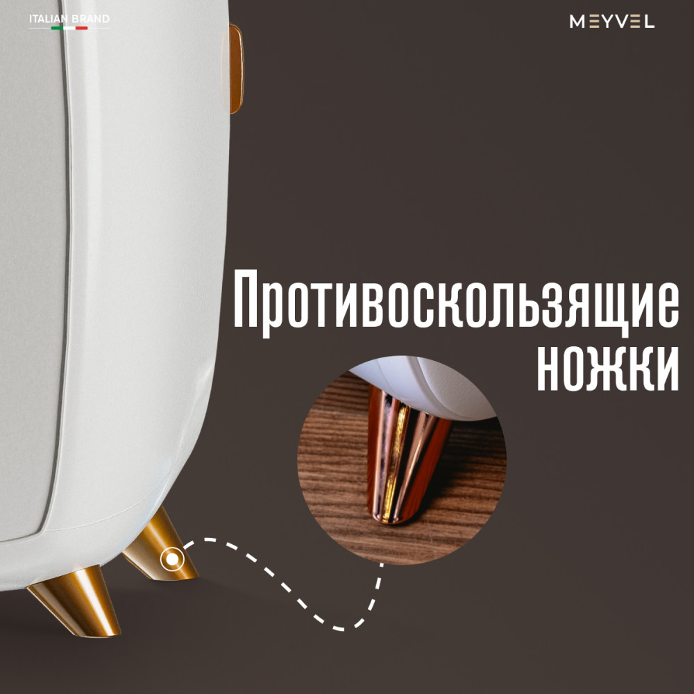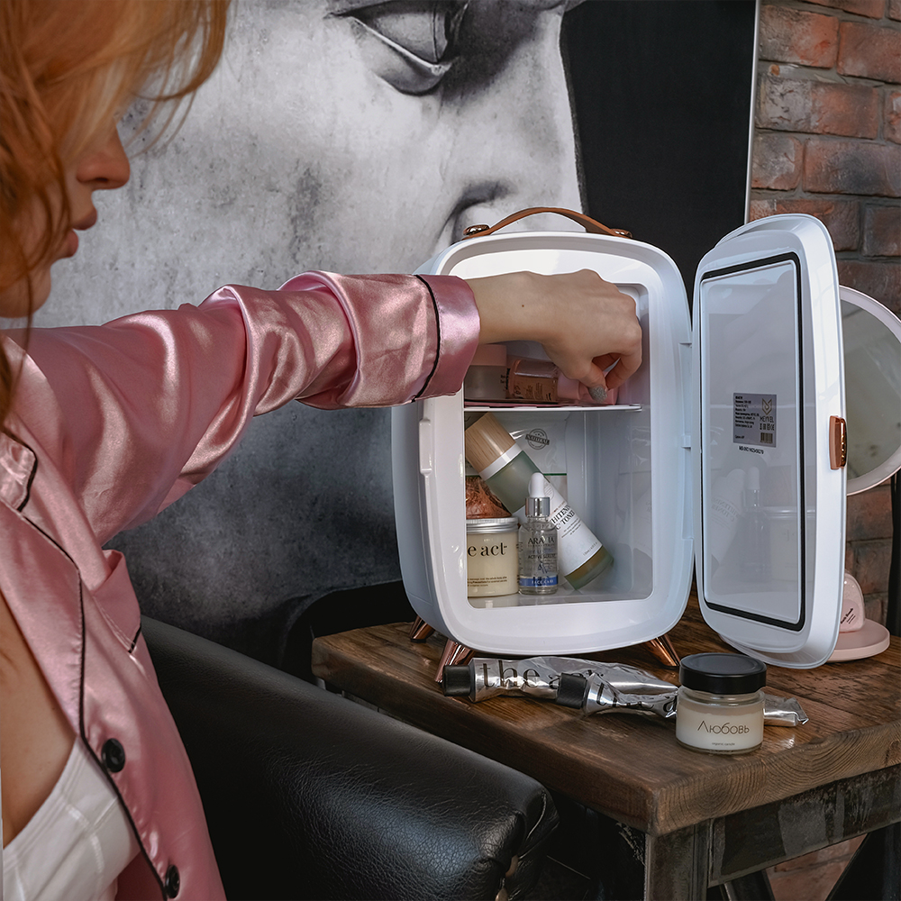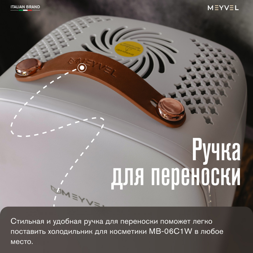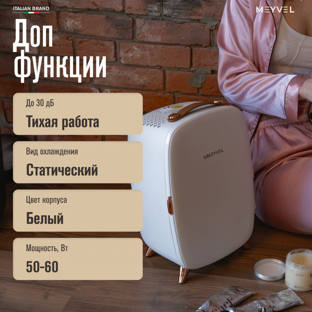 Ваш повседневный ритуал красоты превратится в истинное удовольствие с бьюти-холодильником Meyvel MB-06C1W, который станет незаменимым помощником в сохранении молодости и свежести. Благодаря поддержанию идеального температурного баланса от +8 до +10°C, ваши любимые маски, сыворотки и кремы дольше сохраняют свои активные компоненты и дарят приятную прохладу при нанесении. Удивительная легкость корпуса весом менее двух килограммов в сочетании с изящной ручкой позволяет без труда перемещать устройство, а практически бесшумная работа позволяет разместить этот стильный аксессуар прямо на прикроватной тумбе, не нарушая ваш сон.