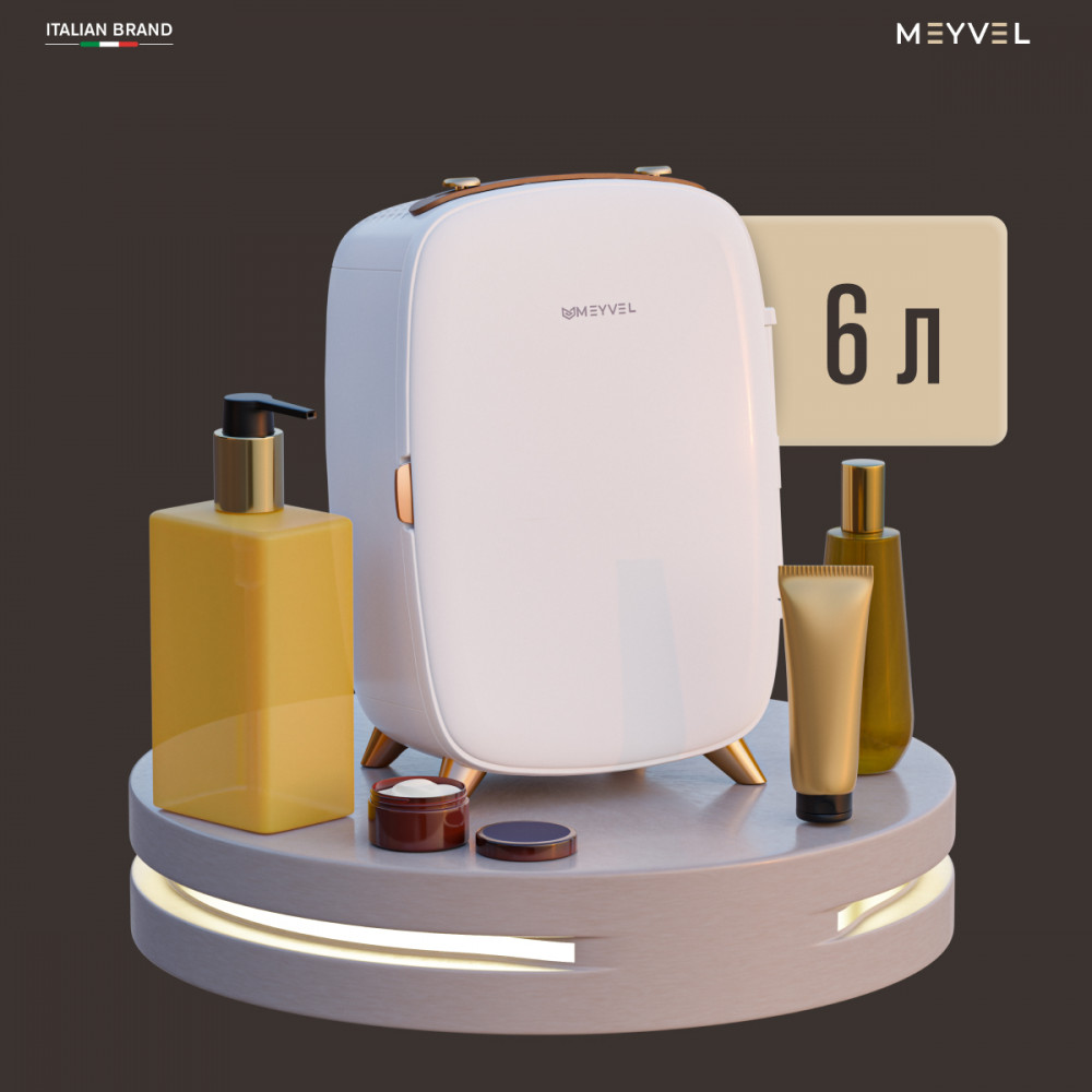 Компактный бьюти холодильник для косметики Meyvel MB-06C1W, в белом цвете
