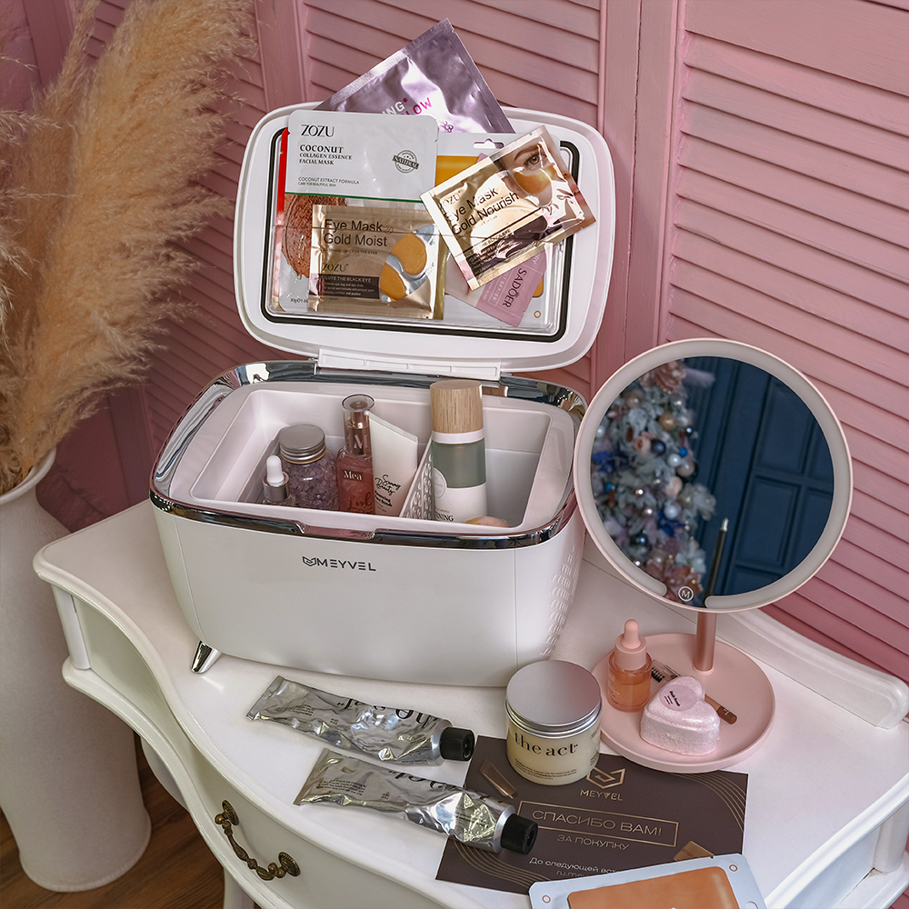 Компактный бьюти холодильник для косметики Meyvel MB-06C3W, в белом цвете