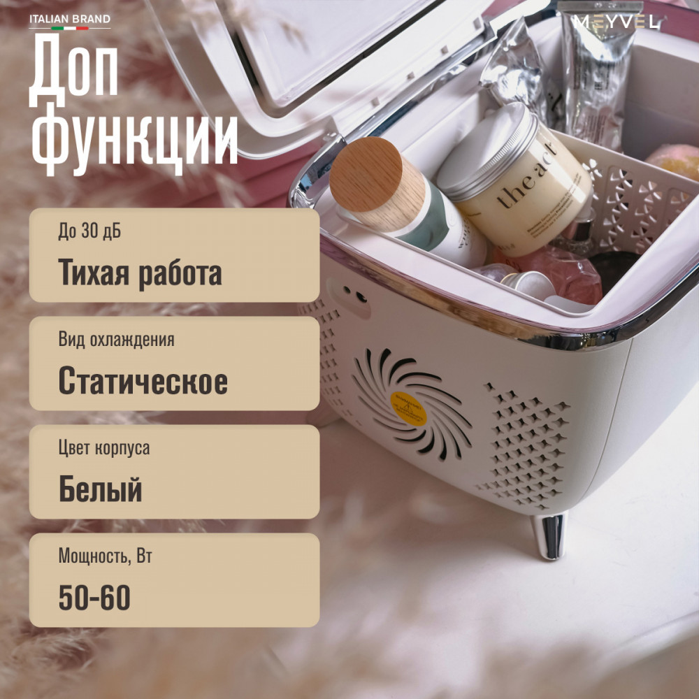 Бьюти-холодильник Meyvel MB-06C3W на 6 л — это удобный способ хранить косметику в правильных условиях, чтобы она дольше сохраняла свежесть и свои свойства. Температурный диапазон от +8 до +10 °C помогает бережно ухаживать за кремами, сыворотками и другими средствами, которые особенно любят прохладу.