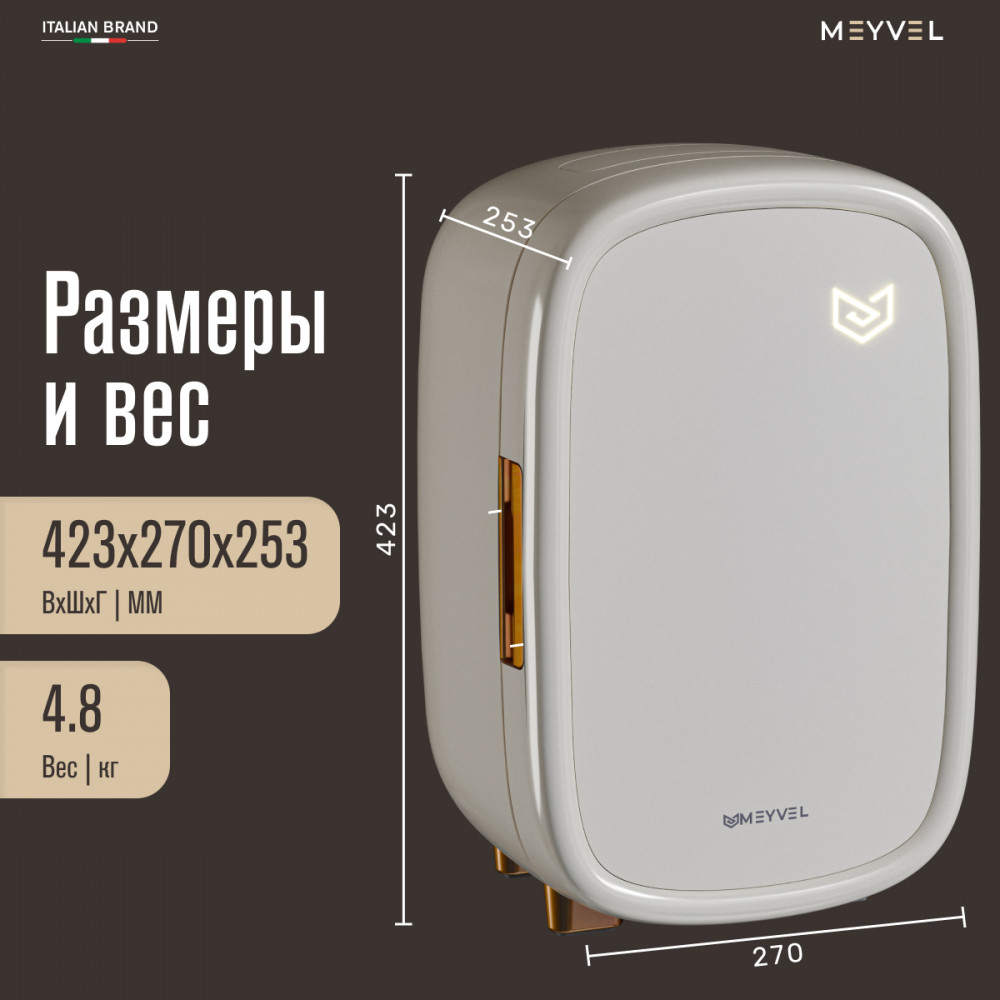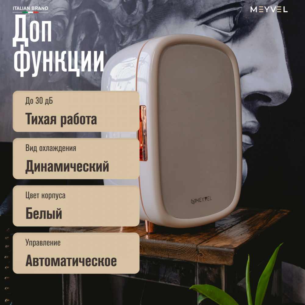 Компактный бьюти холодильник для косметики Meyvel MB-12C1W, в белом цвете объемом 12 литров