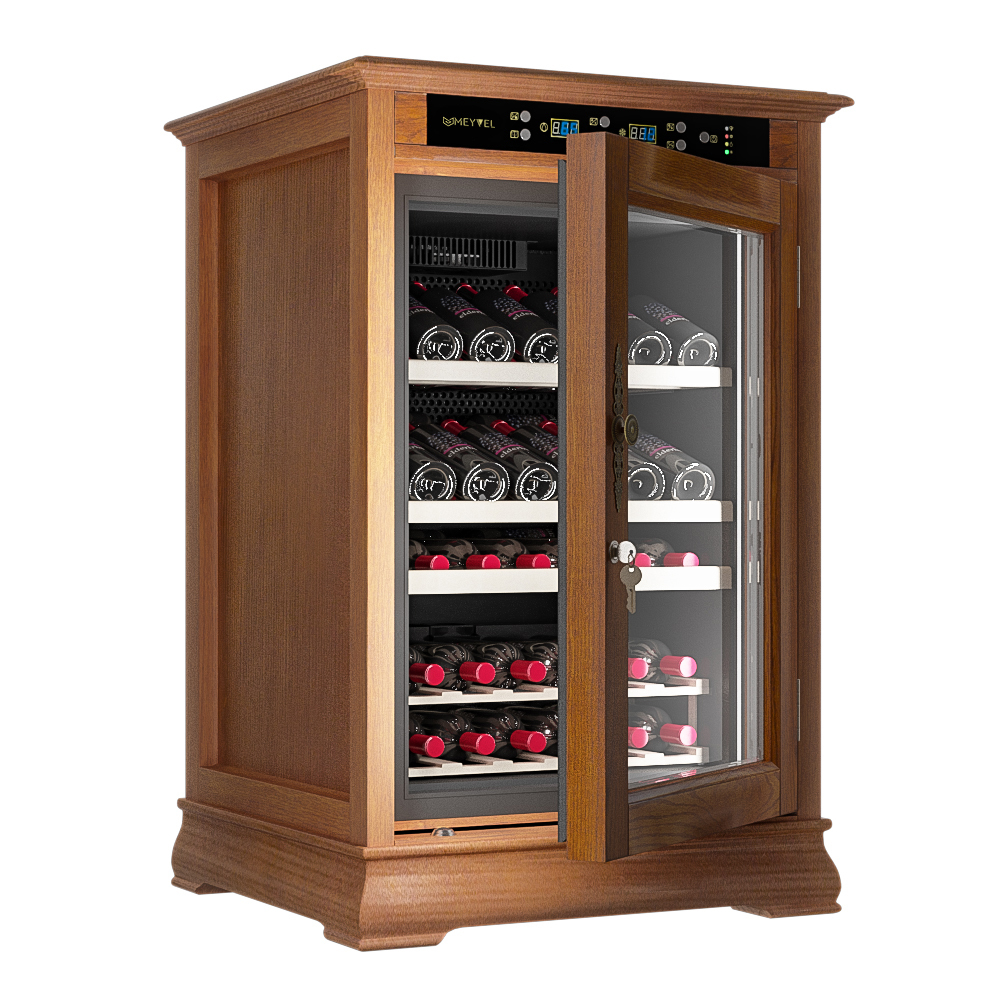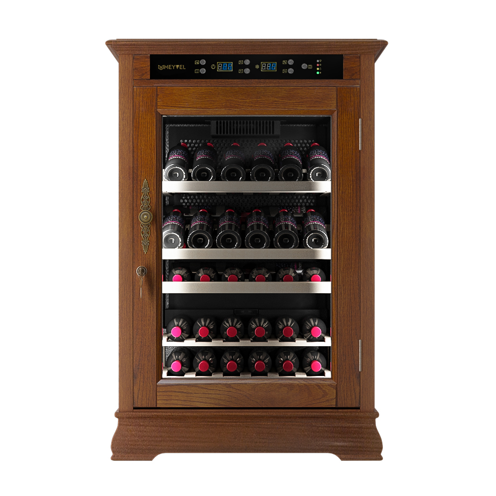 Отдельностоящий винный холодильник Meyvel MV46-WN1-C в классическом стиле с отделкой орех