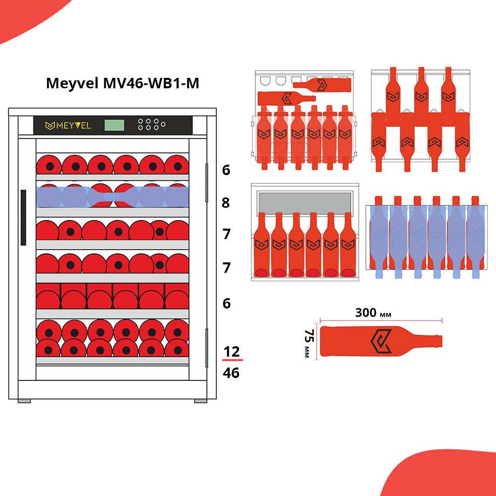 - вместительность до 46 бутылок типа Бордо (0, 75л)
