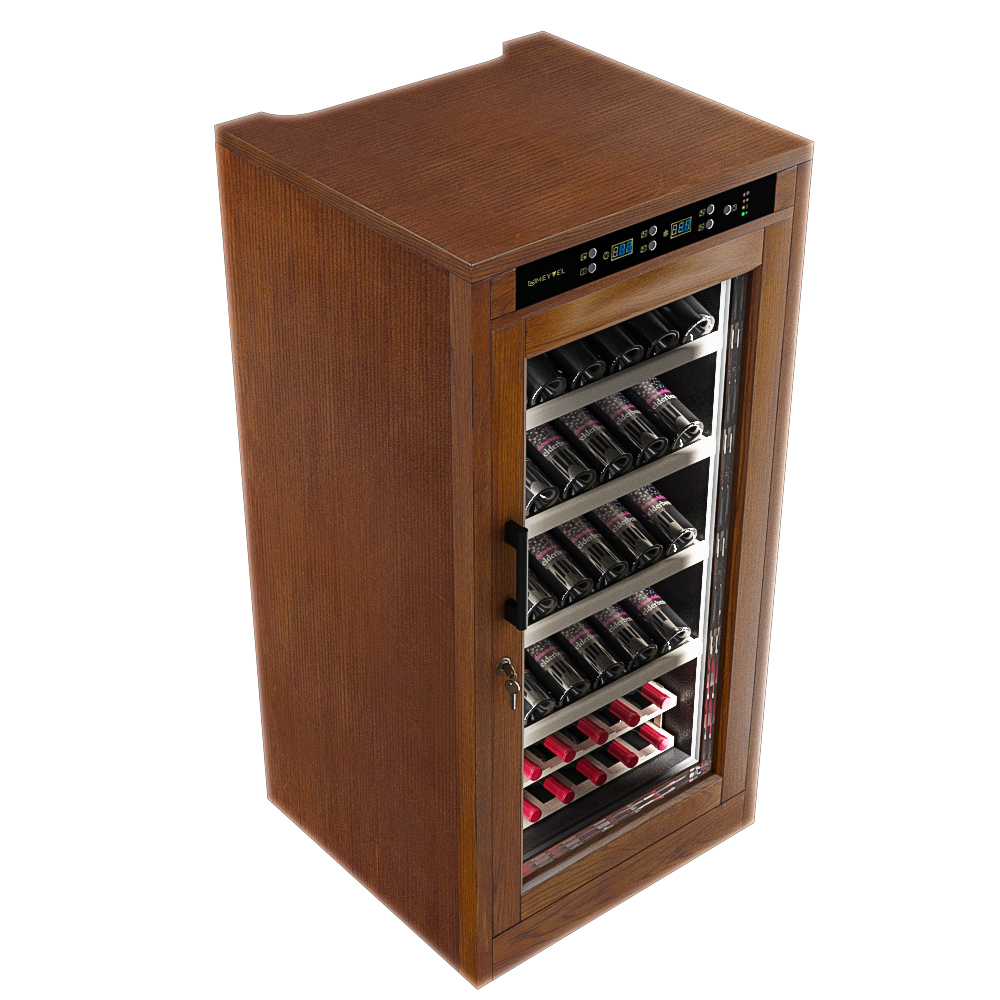 Для защиты от ультрафиолетового излучения, модель оснащена двойным полым стеклом. Специальная система антизапотевания двери и доступная вариация включения светодиодной подсветки подарят Вам возможность осуществлять эффектную демонстрацию Вашей винной коллекции.
