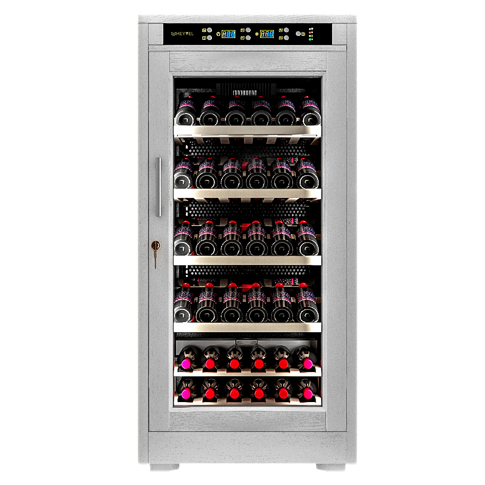 Отделка MV66 осуществлена современным алюминиевым покрытием со специальным тиснением, благодаря чему достигается равномерное охлаждение и качественная циркуляция воздуха. Наряду с этим, производитель оснастил модель инновационной системой управления, позволяющей настроить необходимый рабочий режим: Вы можете произвести настройки уровня температуры и влажности, подобрав оптимальные для хранения Вашей винной коллекции показатели.