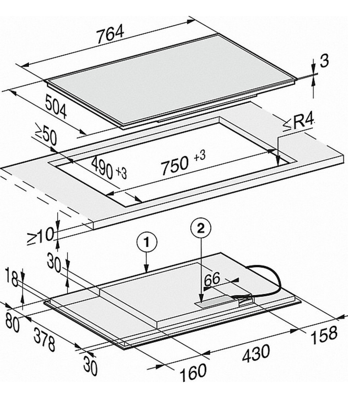 Индукционная варочная панель Miele KM7210 FR шириной 76 см, с рамкой из нерж.стали