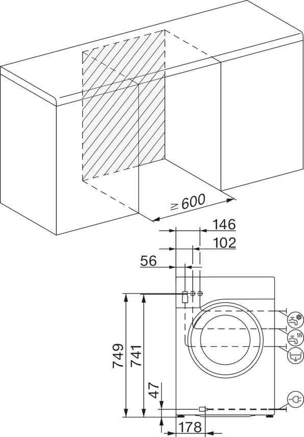 Если вы устанавливаете прибор в нишу или в мебельный шкаф - не забудьте оставить немного места для естественной вентиляции прибора (около 5 см - сзади, сверху или по бокам прибора). Это поможет машине не перегреваться и радовать вас своей работой долгие годы.