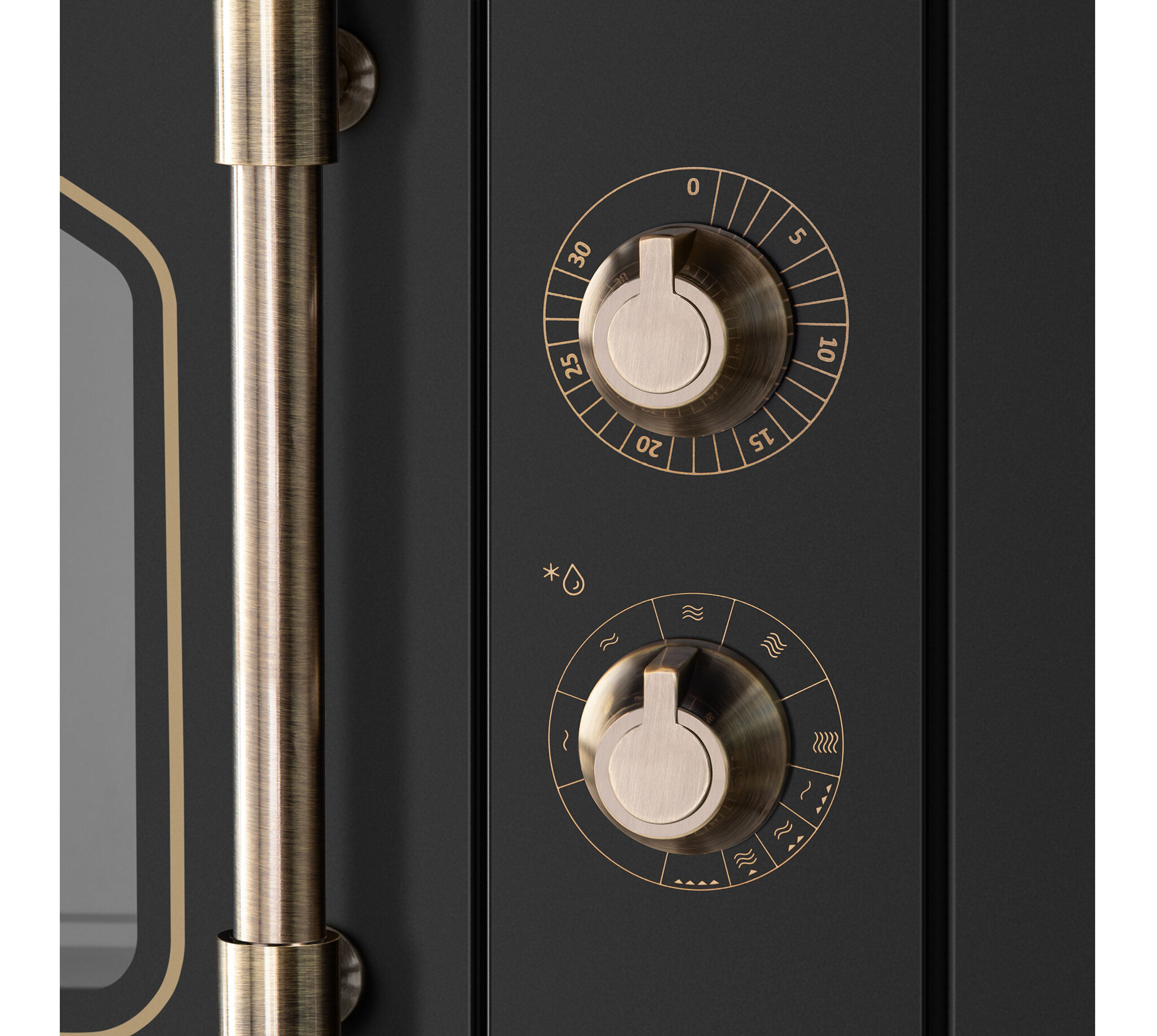 Встраиваемая микроволновая печь Maunfeld JBMO.20.5ERBG в ретро стиле, отделке из черного стекла