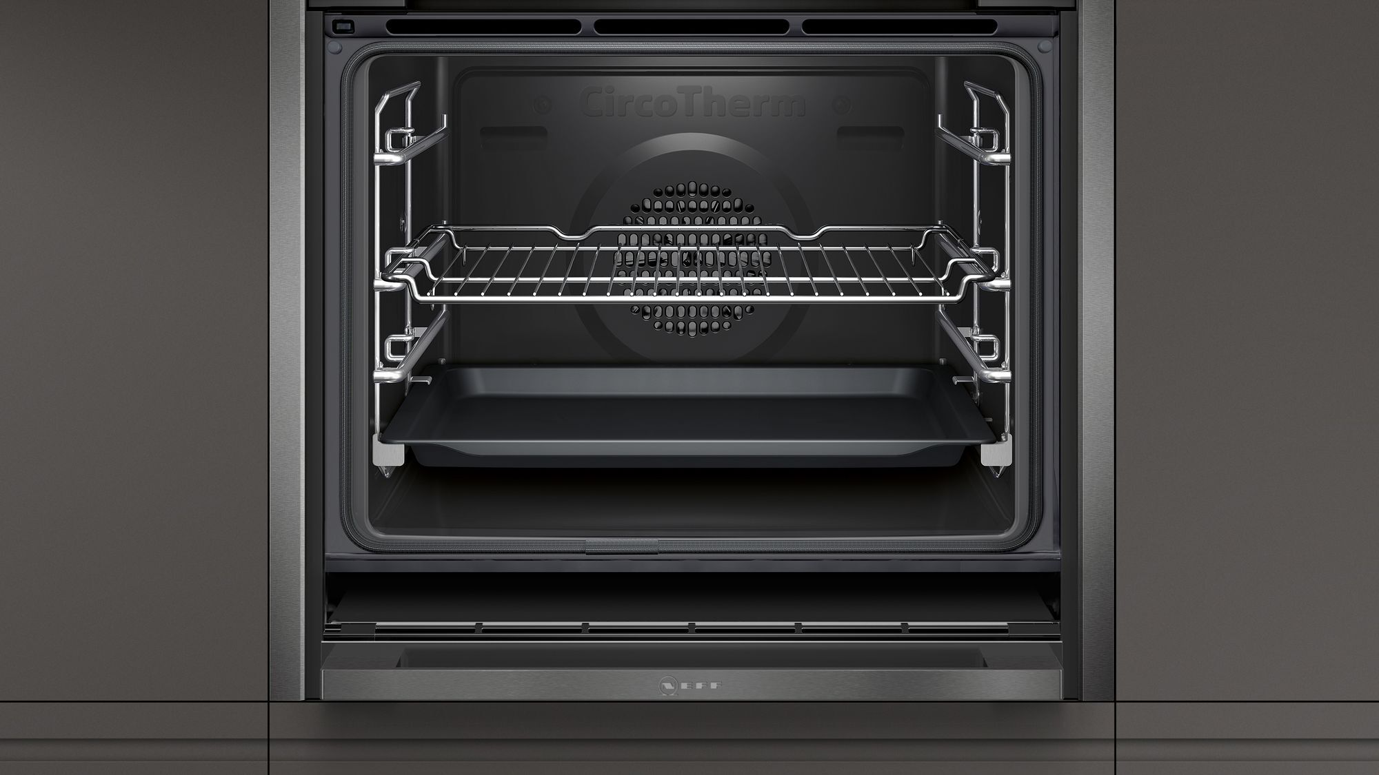 - Circotherm Eco 40–200 °C - При этой уникальной системе циркуляции воздуха горячие потоки с большой скоростью обтекают поверхность блюд. Благодаря этому можно готовить различные блюда одновременно на трех уровнях. CircoTherm обеспечивает следующий эффект: быстрое закрытие пор при обжаривании и выпекании, сохранение сока, витаминов и аромата. Благодаря эффективному использованию жара достаточен разогрев духового шкафа до 160–190 °С, что значительно уменьшает загрязнение духовки брызгами жира и сока. Эксклюзивная разработка NEFF.