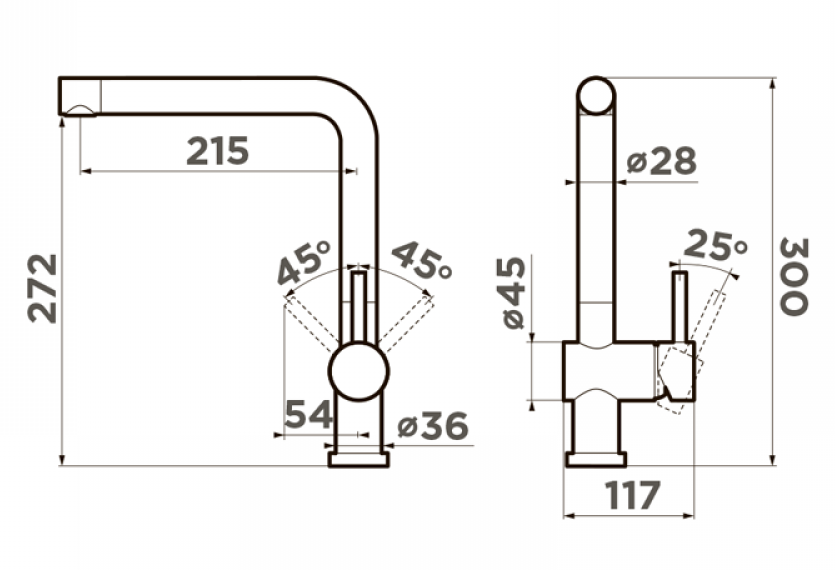 - высота излива 272 мм
