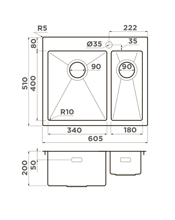 Кухонная мойка накладная Omoikiri Akisame 59-IN, в мебельную базу на 60 см, в цвете нержавеющая сталь