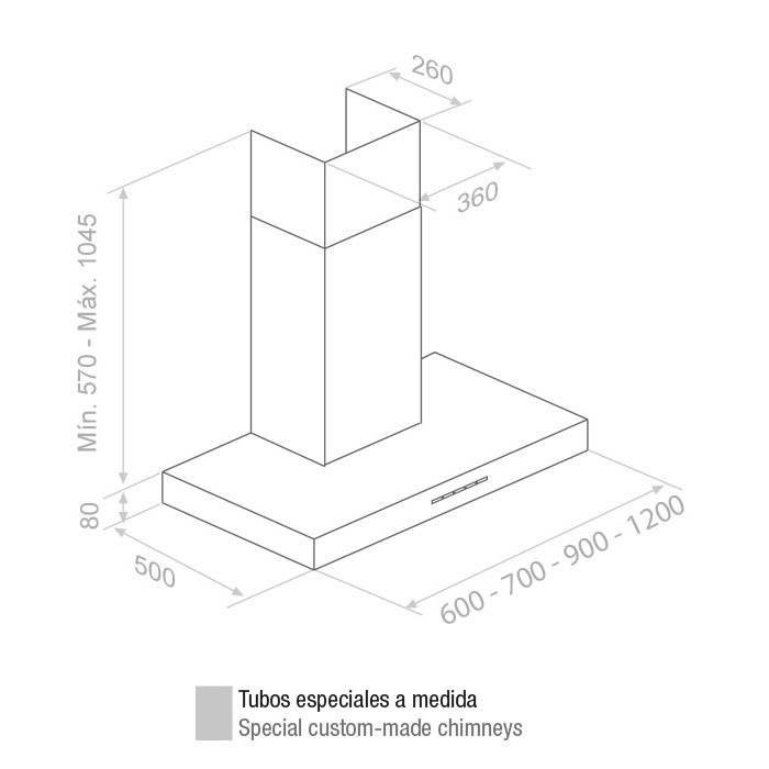 Т-образная вытяжка шириной 60 см Pando P-828/60 IX 750 с настенным креплением, мотором Interior 750, в отделке - нержавеющая сталь