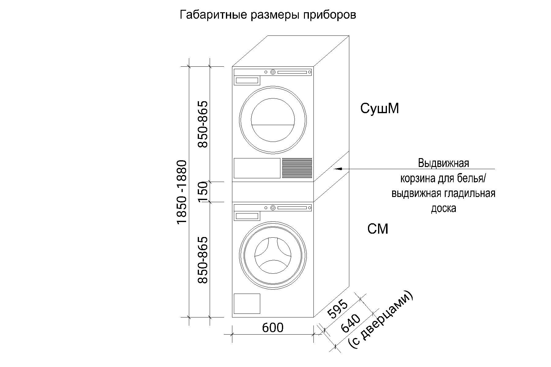 - Обращаем ваше внимание, что глубина сушильной машины больше, чем стиральной (на 4-5 см) и составляет 64 см, т.е глубина встраивания составляет порядка 65 - 70 см.