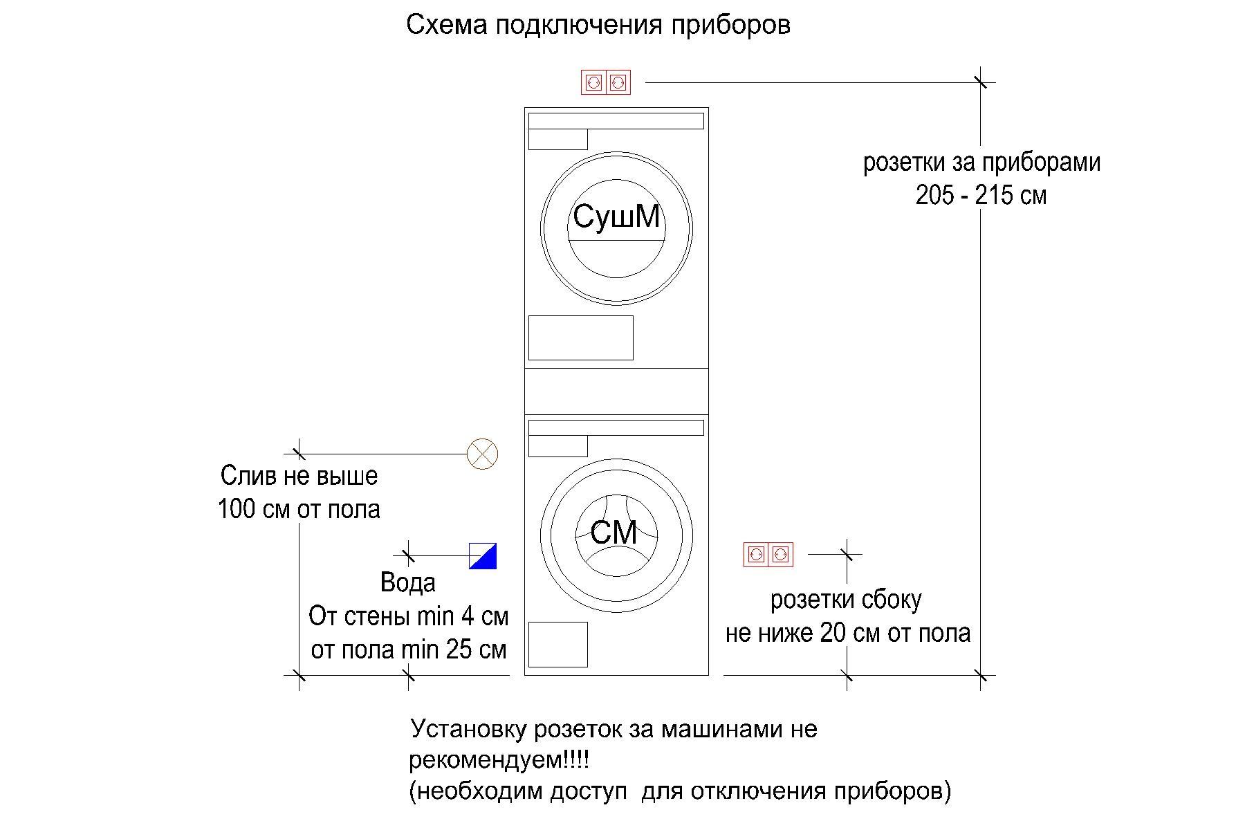 - канализационная труба (для слива отработанной воды из стиральной машины. И при необходимости из сушильной машины).