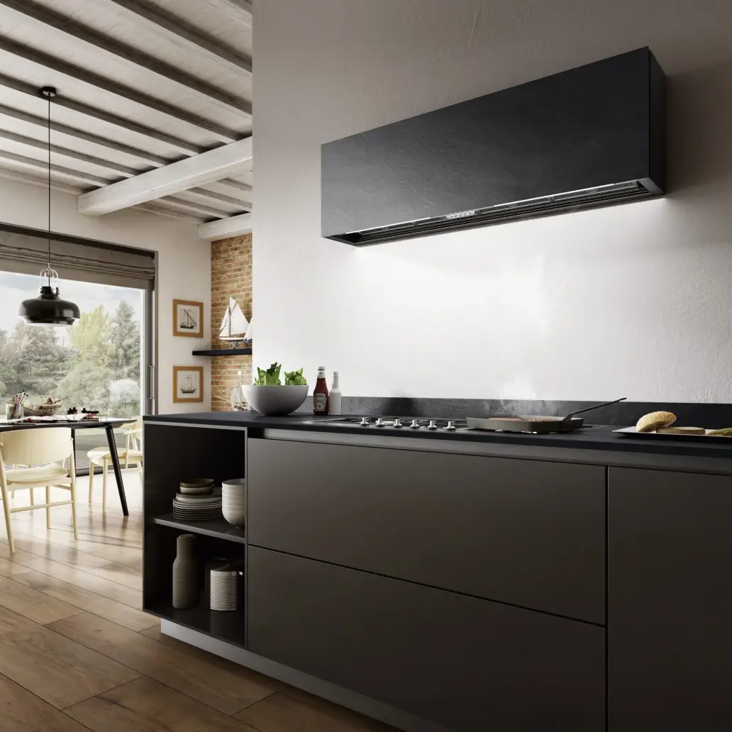 Эта вытяжка проста в уходе и оснащена наклонными решетками, которые эффективно собирают конденсат и легко очищаются. Она также поддерживает режимы рециркуляции и отвода, предлагая производительность до 1200 м³/ч и три скорости плюс интенсивный режим для быстрого удаления запахов.