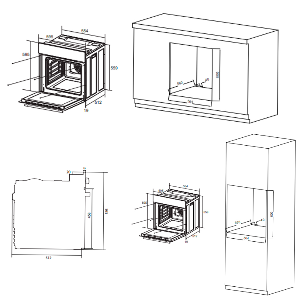 Работой духовки осуществляется поворотными ручками. Можно установить таймер (до 120 мин), выбрать температуру (50°-250°C) и один из 7-ми режимов работы: внутреннее освещение, традиционный нагрев, большой гриль, конвекция с нижним нагревом, нижний нагрев, конвекционный нагрев, малый гриль.