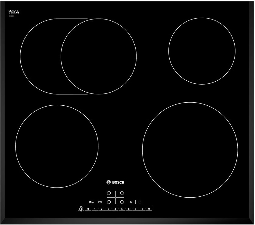 Для того чтобы вы могли подобрать размер зоны нагрева в соответствии с используемой посудой, большинство электрических варочных панелей Bosch имеют зоны расширения, которые могут быть круглыми или овальными. Подключение зон расширения осуществляется при помощи сенсорных клавиш.