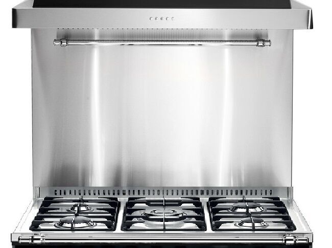 Стеновая панель для плиты Lofra, ширина 90 см , высота 65 см, цвет - СТАЛЬ + фурнитура хром