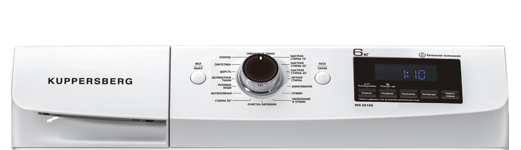 Стиральная машина Kuppersberg WS 50106 в белом цвете с интелектуальной системой Fuzzy Logic, глубиной 45 см