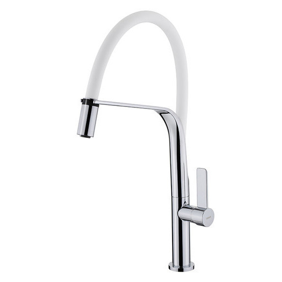 Смеситель для кухни * цвет - БЕЛАЯ ЭМАЛЬ / ХРОМ * ручной 1-режимный душ * съемный гибкий поворотный излив * противонакипной аэратор * катридж 40 мм * высота смесителя 49 см * высота излива 28,5 см * глубина излива 22 см