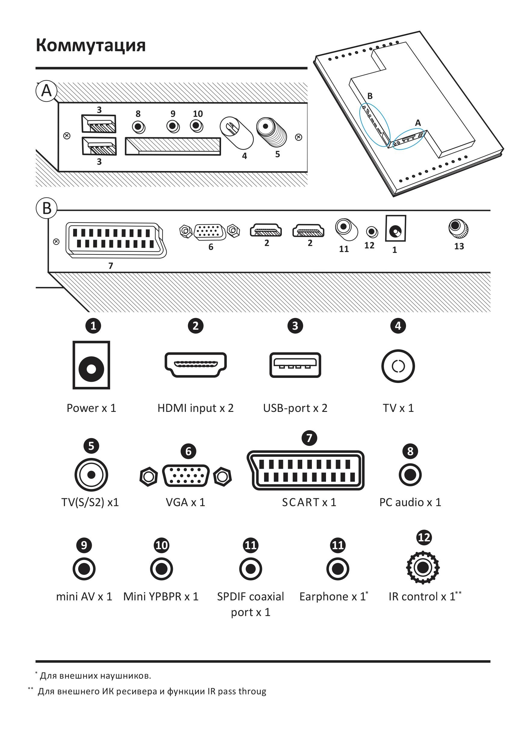 ЖК-матрица со светодиодной подсветкой имеет разрешение full HD и яркость 250 cd/m2. Вы можете воспользоваться преимуществами USB-плеера, подключить любую приставку через HDMI-выход или принимать цифровой телевизионный сигнал по стандартам DVB-T2 или DVB-C.