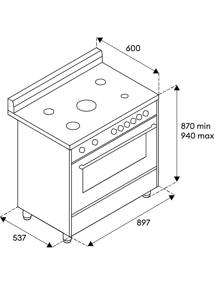 Варочный центр серии Futura * ширина 90 см * цвет - НЕРЖ.СТАЛЬ * объем духовки 115 литров * газовый верх / электрический низ * газ-контроль * электроподжиг * 5 конфорок * конфорка WOK * 11 режимов приготовления * стальные решетки * таймер * освещение * 3 стекла дверцы * габариты прибора (Ш*В*Г) 90*87-94*60 см