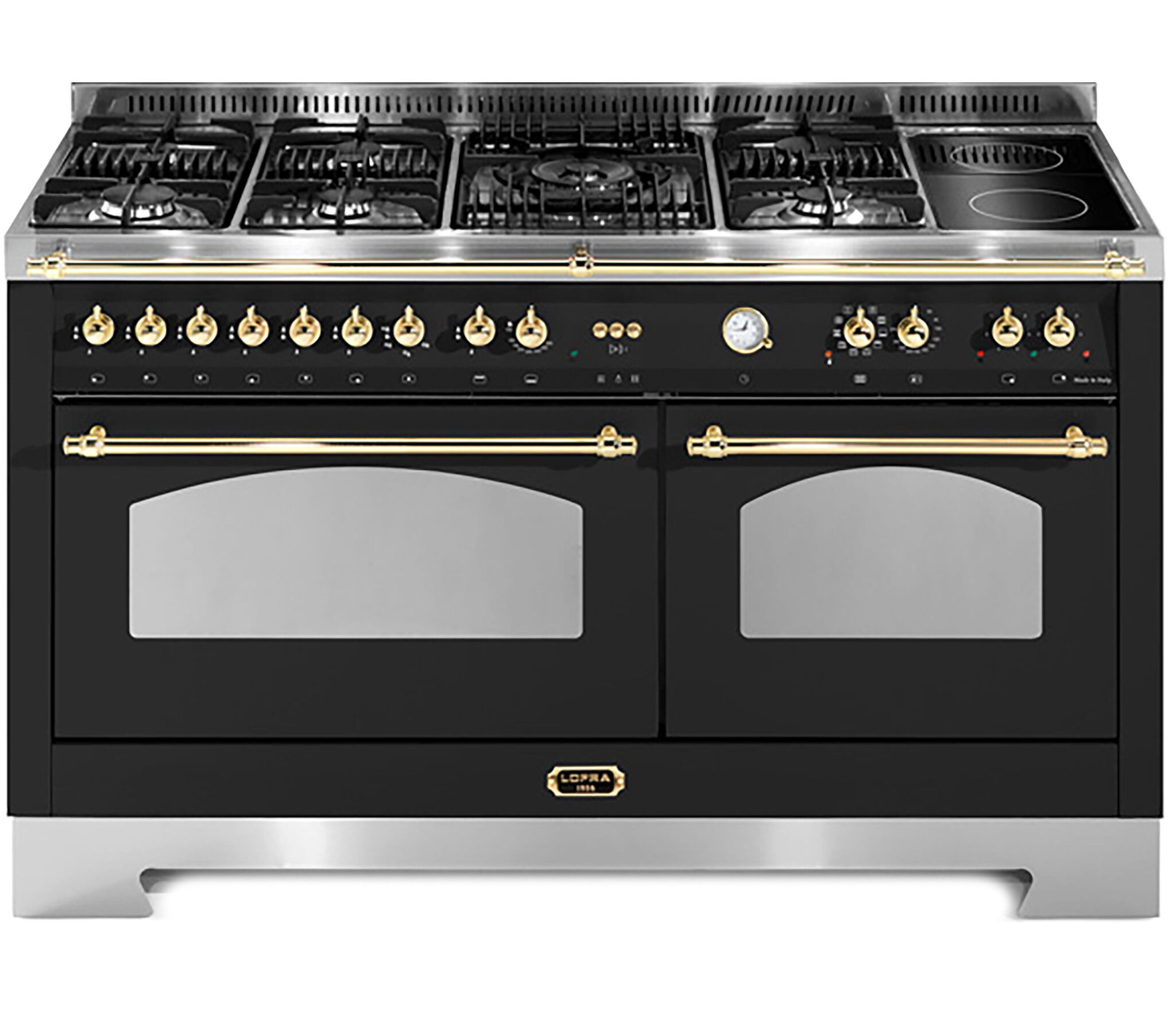 Газовый варочный центр шириной 150 см Lofra RNMD 156 MFT+MFT/AEOV из линейки Dolcevita с двумя электрическими духовками, черного цвета