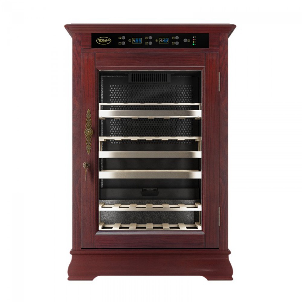 Классический винный шкаф Cold Vine C46-WM1 (Classic) является стильным дополнением к вашему дому и прекрасным помощником в вопросе хранения вина. Объем данного шкафа составляет 138 литров, а это означает, что вы с легкостью можете разместить внутри него до 46 бутылок вина типа Бордо объемом по 0, 75 литра. Данная модель является отдельностоящей, а это означает что у вас появится не просто многофункциональный помощник, но также и стильное дополнение к вашему интерьеру. Данный винный шкаф не подразумевает разделения на зоны, соответственно, вы можете разместить в нем вина только одного типа. Температурный режим может быть выставлен любой в диапазоне от +5 до +22 ˚С. Уникальная опция линейки данных шкафов - наличие цифрового контроля влажности. Тип охлаждения - компрессорный. Корпус данного винного шкафа выполнен из натурального дерева цвета махагон (американский дуб). В базовой комплектации имеются деревянные выкатные полки в количестве 4 штук.