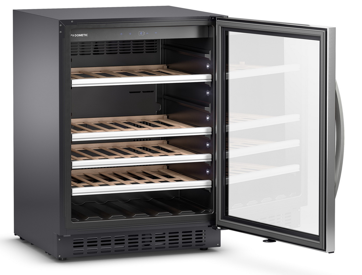 Стандартная загрузка винного шкафа Dometic показывает вместительность винного шкафа при всех установленных полках в комплектации. Однако, емкость винного шкафа можно увеличить за счет демонтажа некоторых полок, что показывается в инструкции к модели. Важно отметить, что винные шкафы Dometic, в отличие от многих других производителей, вмещают не только стандартные, бордосские бутылки, но и другие типа Бургунди, Рислинг, Шампань, Магнум.