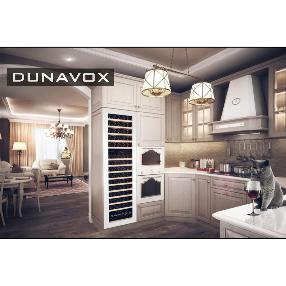 Встраиваемый винный холодильник высотой 178 см Dunavox DAB-114.288DSW.TO с технологией открывания двери Touch Open, в белом цвете