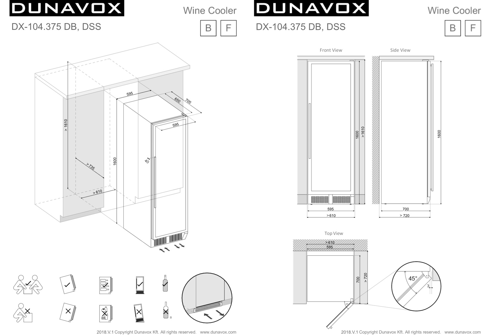 Рекомендуется устанавливать винный шкаф Dunavox вдали от прямых солнечных лучей и источников тепла (духовки, нагревателя, батареи и т.д.). Прямой солнечный свет может плохо повлиять на корпус, а источники тепла могут увеличить энергопотребление. Не рекомендуется устанавливать прибор на полы с подогревом без специальной термоизолирующей подложки. Слишком низкая температура окружающей среды также может быть причиной неправильной работы изделия.