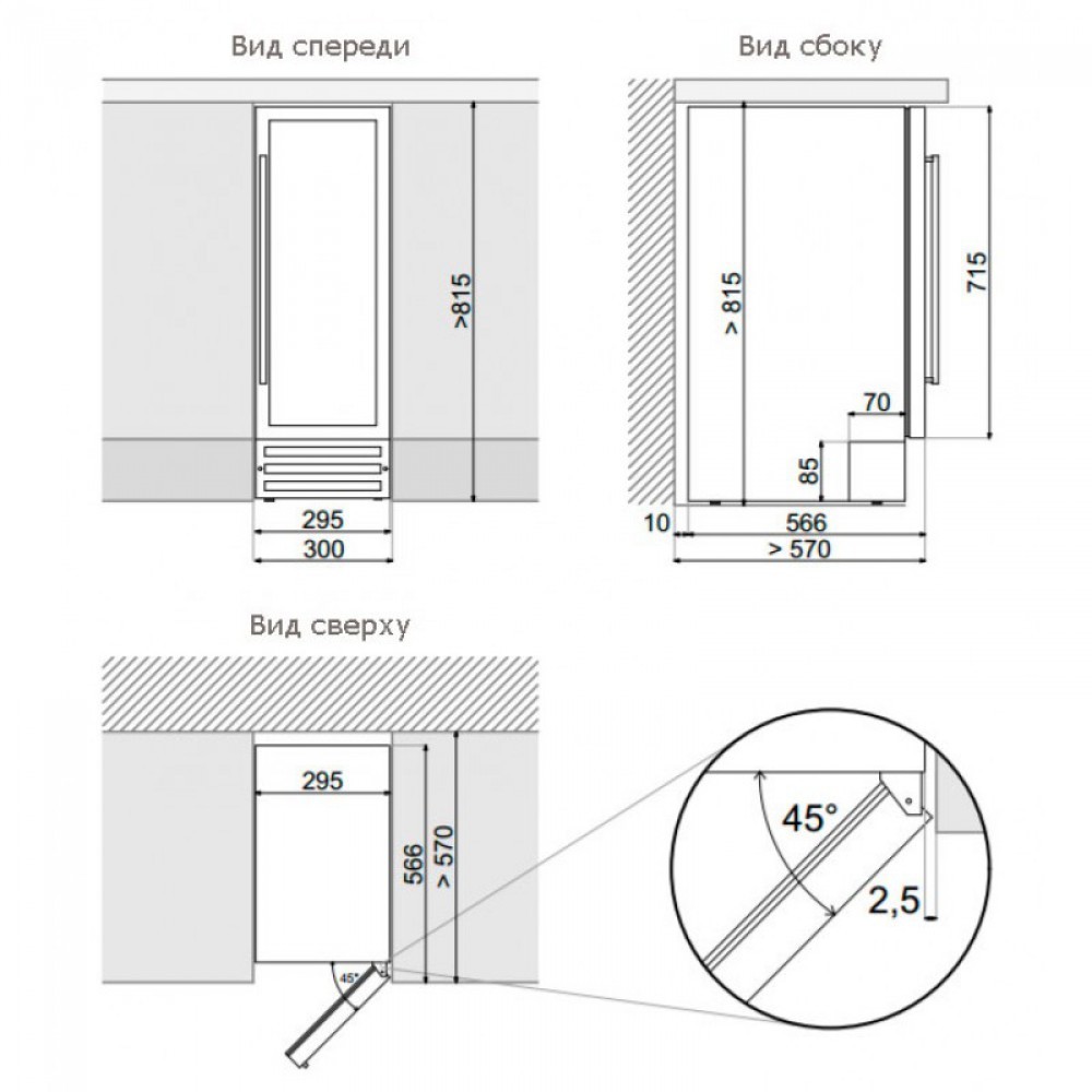 Винный шкаф Dunavox DX-19.58BK/DP c легкостью встраивается под низкую (815 мм) столешницу или может использоваться отдельно. Охлаждение компрессора происходит через вентиляционные решетки внизу шкафа, что позволяет встраивать винный холодильник без зазоров.
