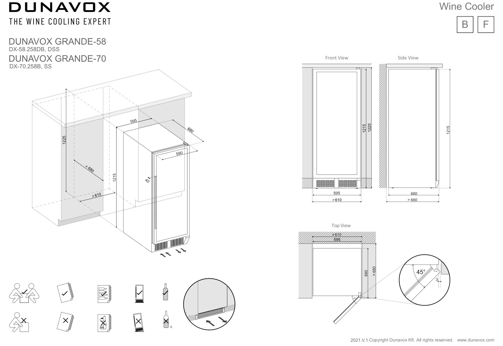 Рекомендуется устанавливать винный шкаф Dunavox вдали от прямых солнечных лучей и источников тепла (духовки, нагревателя, батареи и т.д.). Прямой солнечный свет может плохо повлиять на корпус, а источники тепла могут увеличить энергопотребление. Не рекомендуется устанавливать прибор на полы с подогревом без специальной термоизолирующей подложки. Слишком низкая температура окружающей среды также может быть причиной неправильной работы изделия.