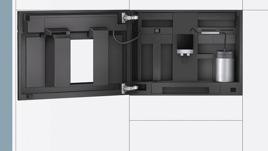 Встраиваемая кофемашина Siemens CT636LES1 в отделке нержавеющая сталь + черное стекло, для одновременного приготовления 2-х чашек