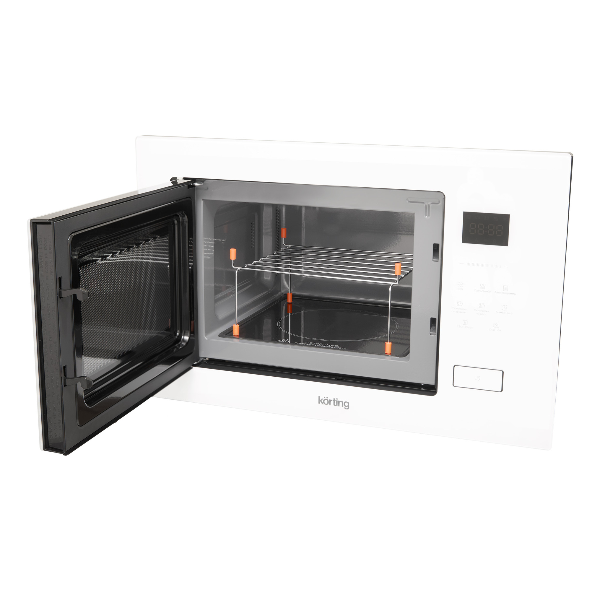 Встраиваемая микроволновая печь с грилем Korting KMI 827 GW в отделке из белого стекла
