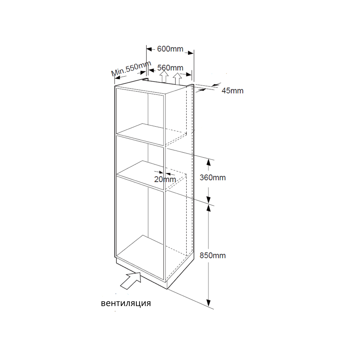 Прибор устанавливается в мебельную нишу с размерами согласно схеме встраивания. Микроволновая печь должна быть заземлена. Прибор оснащен шнуром питания и вилкой. Вилку необходимо вставлять должным образом, установленную и заземленную розетку. Задняя панель корпуса не должна быть закрыта стенкой кухонной мебели. Следите за тем, чтобы вентиляционные отверстия печи не оказались заблокированы. Это может привести к некорректной работе. Используйте только рекомендованную для микроволновых печей посуду. Список рекомендуемой посуды находится в инструкции по эксплуатации.