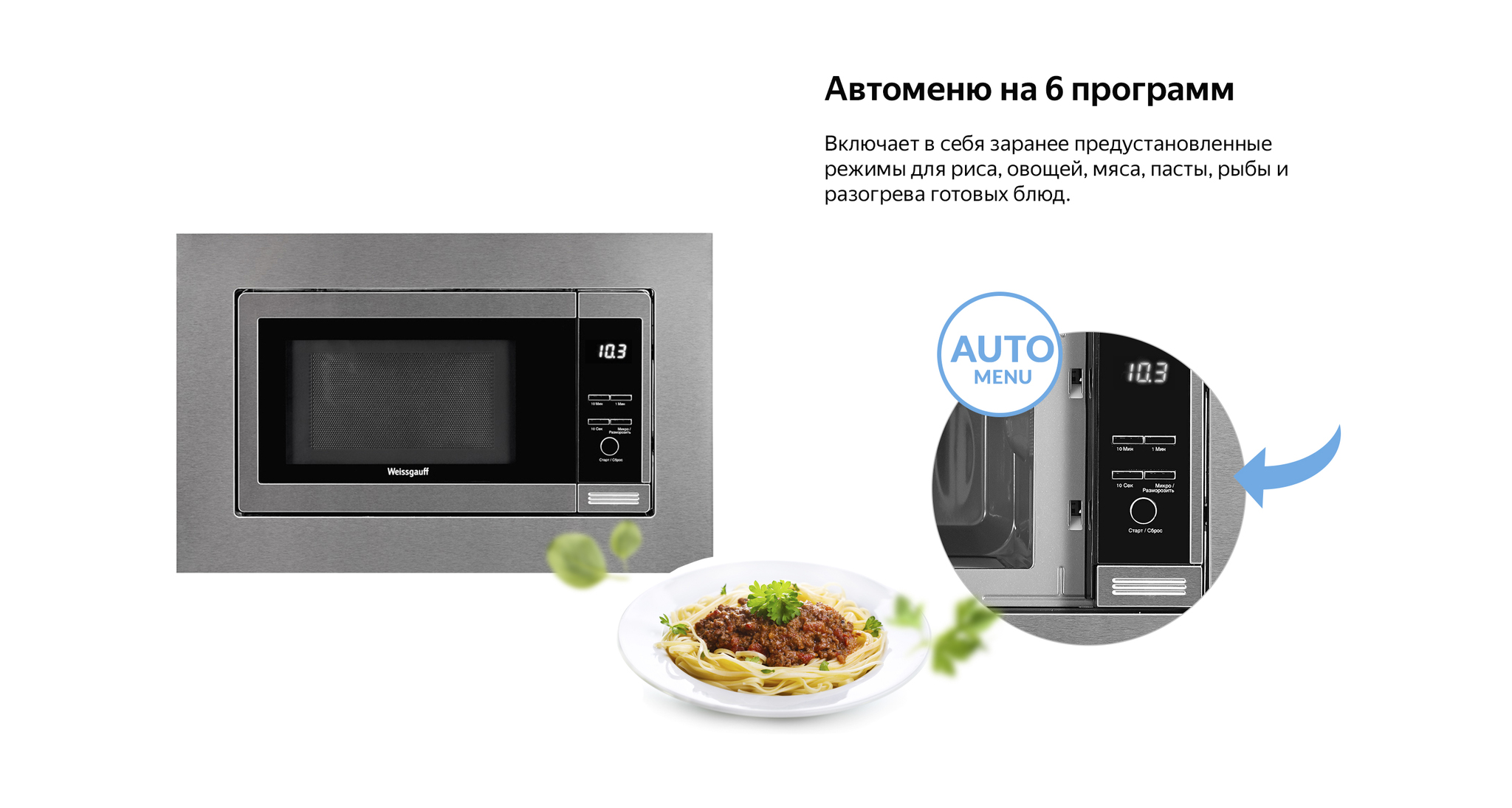 Встраиваемая микроволновая печь Weisgauff HMT-205 в отделке из нержавеющай стали